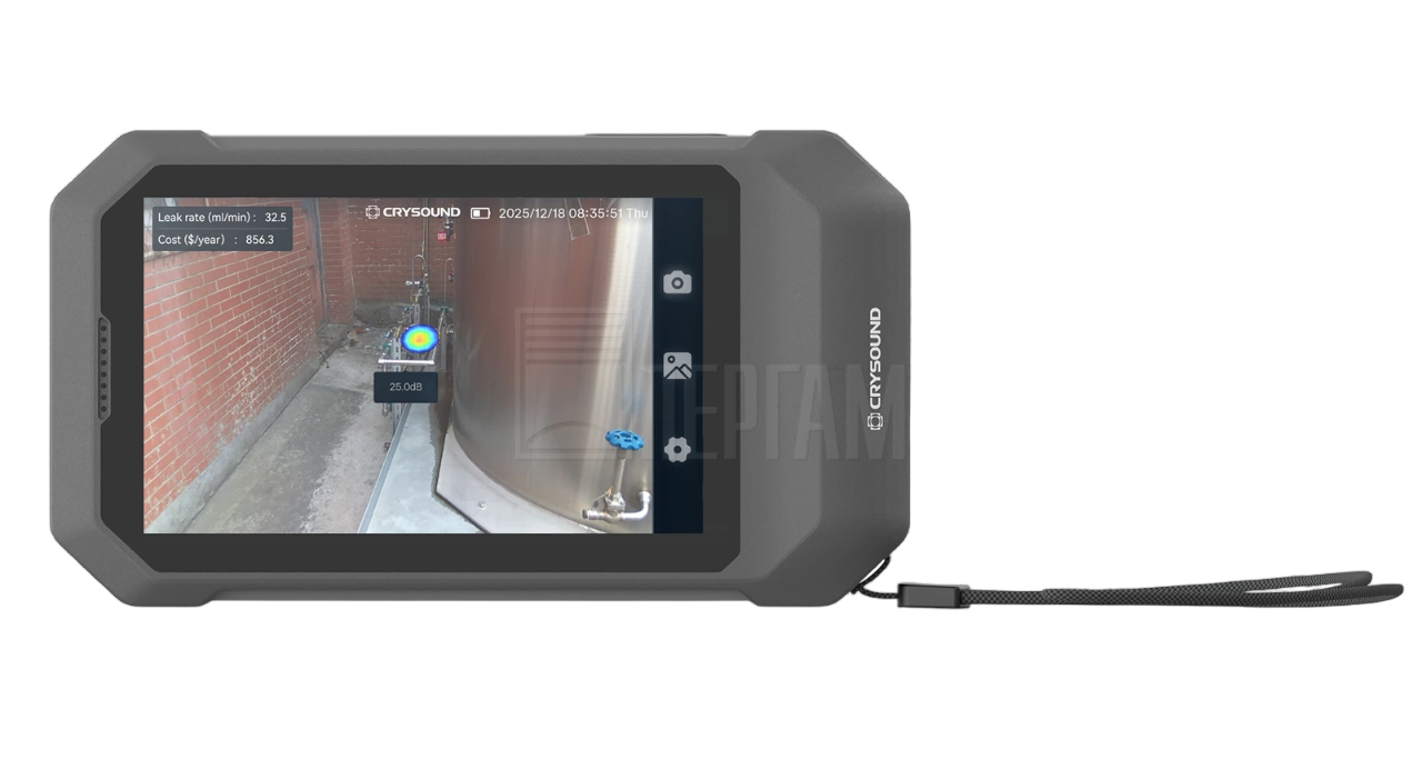 Crysound CRY8025 PRO — компактная акустическая камера для поиска источников шума, утечек газа и частичных разрядов. Она не только обнаруживает утечки, но и способна оценивать их скорость, что делает диагностику более информативной. Постобработка данных выполняется с помощью специального ПО для ПК.